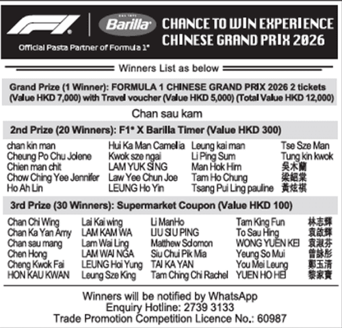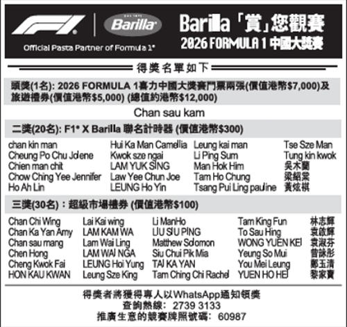 得獎名單將刊登於2026年2月27日之星島日報及The Standard。